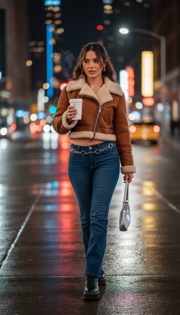 Y2K Aviator Core: Shearling Jacket & Low Rise