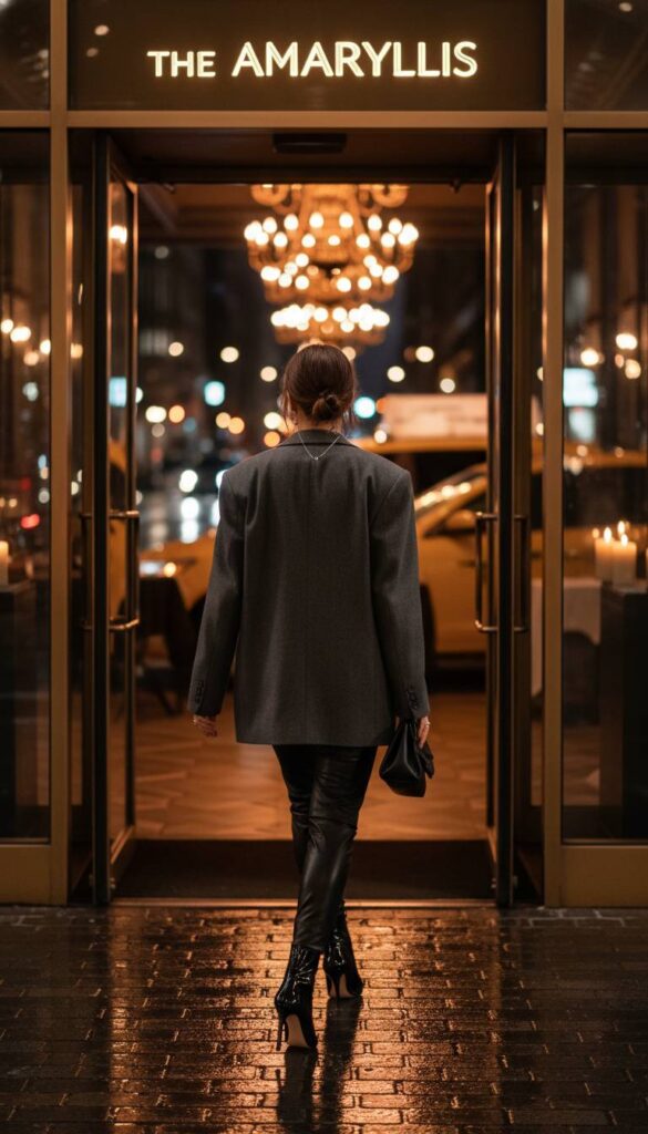 For a night out, nothing beats the sleek combination of pointed-toe stiletto booties and faux leather leggings. This monochromatic base elongates your frame instantly. Layer an oversized blazer over a silk camisole to add a touch of structure and menswear-inspired cool to the outfit.