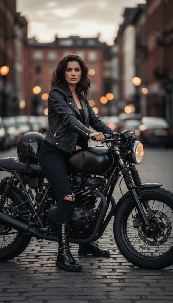 Go for high-shine impact with patent leather boots paired with black skinny jeans and a moto jacket. The key here is mixing textures—shiny patent, matte denim, and pebbled leather—to keep the monochromatic look interesting. It’s edgy, sleek, and undeniably cool.