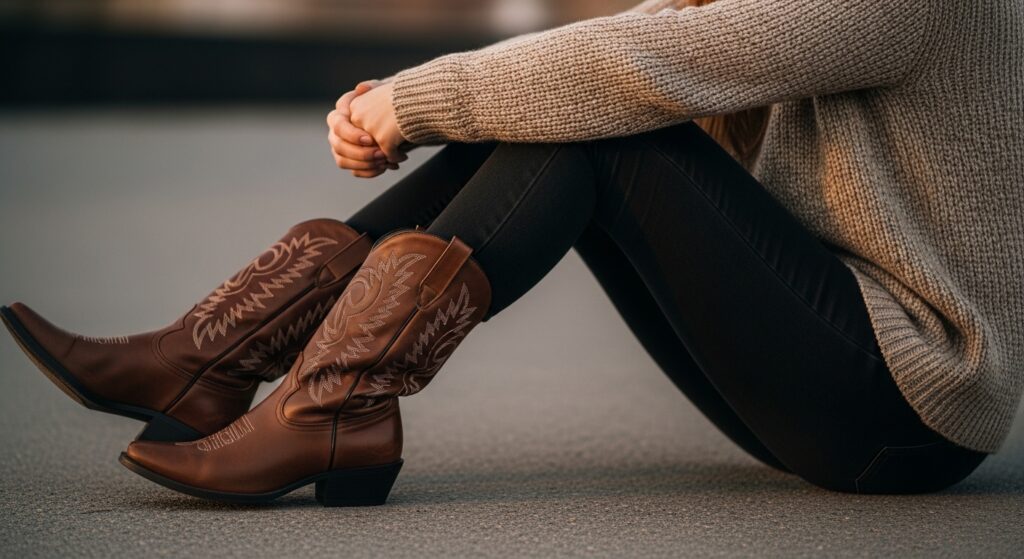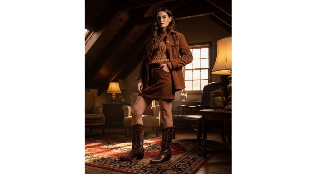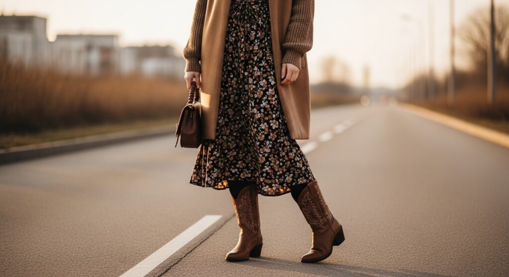 As you can see, brown cowboy boots are far more versatile than you might have imagined. They have the unique ability to add character, texture, and a touch of rebellious spirit to almost any winter wardrobe. From cozy sweater dresses to sharp blazers and classic denim, the styling possibilities are truly endless. Don’t be afraid to experiment and let your boots become the foundation for creative and confident cold-weather looks that reflect your personal style.