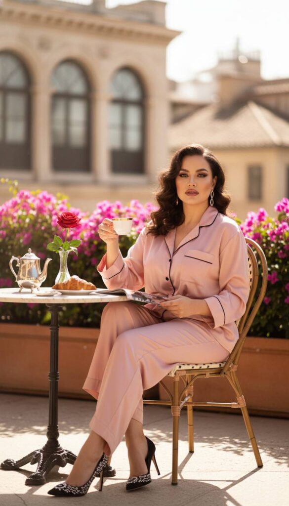 Bringing the bedroom to brunch is the ultimate power move. A high-quality satin pajama set (shirt and shorts or trousers) looks incredibly chic when styled with heels and statement jewelry. Keep the shirt unbuttoned low to avoid looking like you actually just woke up.