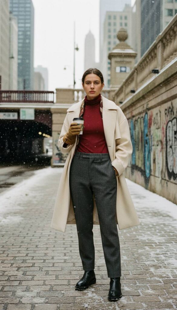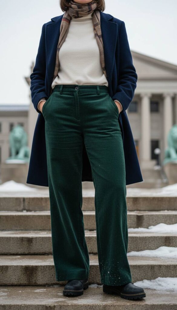 Denim can feel frigid and unforgiving in sub zero temperatures. Enter the wide leg corduroy pant, a textural and warm alternative. The current iteration favors a fine wale corduroy for a more velvety, less bulky appearance, in rich, saturated colors like forest green, rust, or deep navy. The wide leg cut is crucial, allowing for discreet layering of silk or fleece lined leggings underneath for maximum warmth without sacrificing the elegant, flowing silhouette. Paired with a fitted cashmere sweater and lug sole boots, this pant creates a look that is both comfortable and impeccably polished for a weekend at the Art Institute.