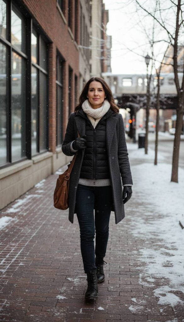 The puffer vest has evolved. The most stylish iterations are thin, lightweight, and tailored, designed to be worn as a mid layer rather than bulky outerwear. Worn over a cashmere sweater and under a wool overcoat, it creates a powerful, unseen barrier of warmth without adding significant volume. This technique, known as ‘invisible layering,’ is a game changer for Chicago winters. Look for a version in a matte black or navy with minimal branding. It provides core warmth, allowing you to wear a more elegant, less voluminous outer coat while remaining perfectly comfortable on the coldest days.