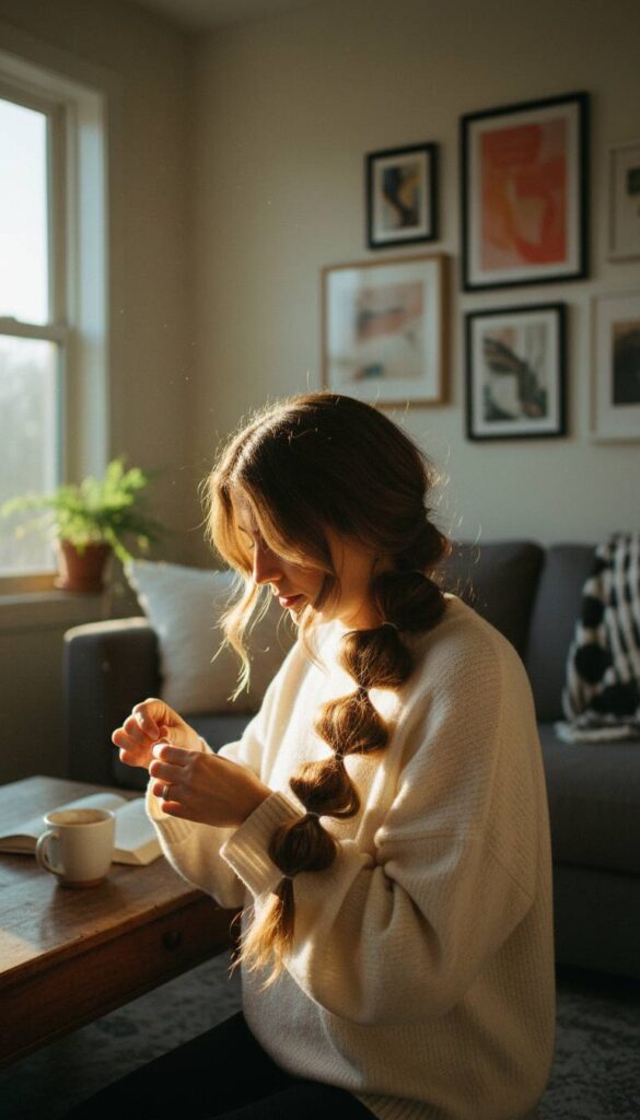 A brilliant entry point for the braid averse, the bubble braid requires no weaving whatsoever. It’s an architectural illusion built with a series of strategically spaced elastics. The hair is pulled into a ponytail, then segmented down its length, with each segment ‘bubbled out’ for dramatic volume. The visual is playful yet chic, especially when executed with high quality silk scrunchies in a monochromatic palette, like shades of dusty rose or champagne. This style transforms a simple ponytail into a piece of soft sculpture, offering a bold silhouette that is deceptively simple to construct, making it a favorite for beginners.