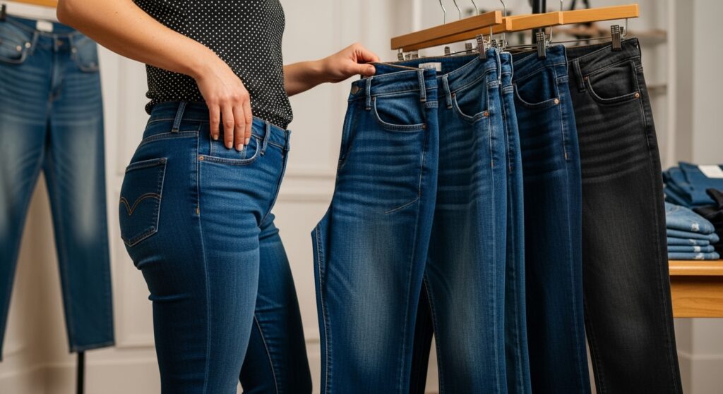 A pair of dark wash, mid-to-high rise, straight-leg jeans offers a perfect balance. The dark color has a slimming effect, while the straight cut skims over your hips and thighs without clinging, creating a long, lean line from waist to ankle. This style avoids drawing too much attention to the lower half. The Gloria Vanderbilt Amanda Classic High Rise Jean is a fan favorite.