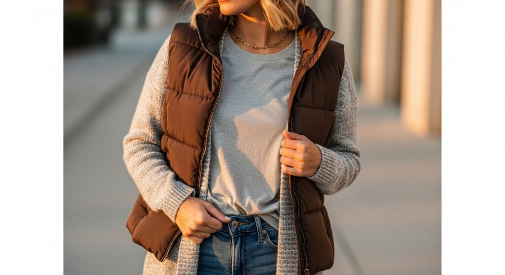 Long-Sleeve Tee, Cardigan, and Puffer Vest