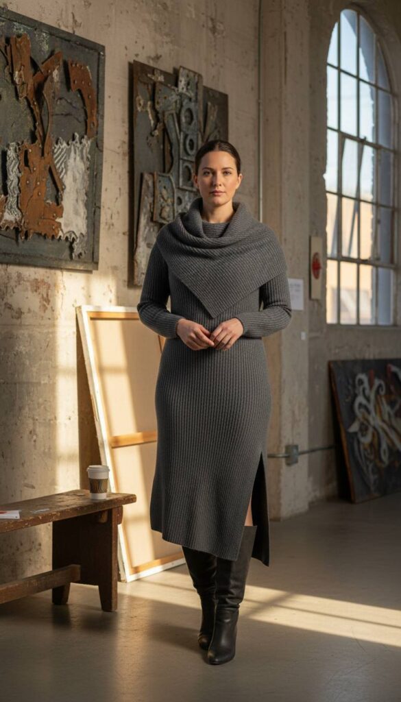 Forget the clingy sweater dresses of seasons past. This winter’s essential knit is all about architectural integrity and thoughtful draping. Picture a heavy gauge merino wool or a dense ribbed cotton blend in a deep forest green or a muted charcoal grey. The magic lies in details like an asymmetrical hemline, a subtle side slit, or a strategic cowl neck that draws the eye upward. This garment does not just cover; it sculpts, creating long, uninterrupted vertical lines that elongate the frame. It is the perfect one and done outfit for a gallery opening or an elevated brunch, offering a sophisticated silhouette that feels both commanding and incredibly comfortable.