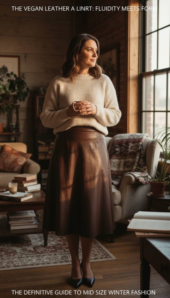 Vegan leather has evolved, now boasting a buttery soft texture that moves with a surprising fluidity. The A line midi skirt is the perfect vehicle for this material. In a deep chocolate brown or a bold oxblood, the skirt’s gentle flare begins at the narrowest part of the waist and falls in a graceful, skimming line to mid calf. This silhouette avoids clinging to the hips and thighs, creating an elegant shape that feels both modern and timeless. The subtle sheen of the fabric catches the light, providing visual interest that pairs beautifully with the matte textures of a cashmere sweater or an alpaca knit.