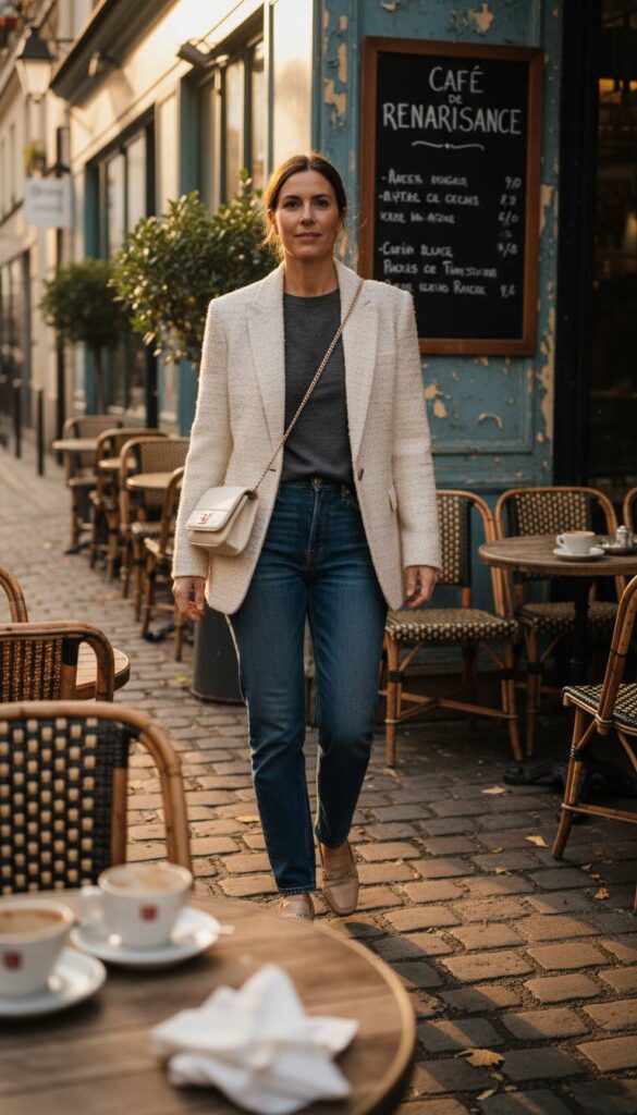 Move beyond basic blazers with the introduction of bouclé. This nubby, looped fabric, famously used by Parisian fashion houses, brings an incredible depth of texture and a sense of cozy luxury. A single breasted bouclé blazer in a winter white or a soft pink adds instant sophistication to even a simple jeans and t shirt combination. The key is a slightly relaxed, but not oversized, fit that follows the body’s lines without constricting. The rich texture itself becomes the focal point, requiring minimal accessorizing while conveying a sense of curated, old money elegance and tactile warmth perfect for a chilly day.