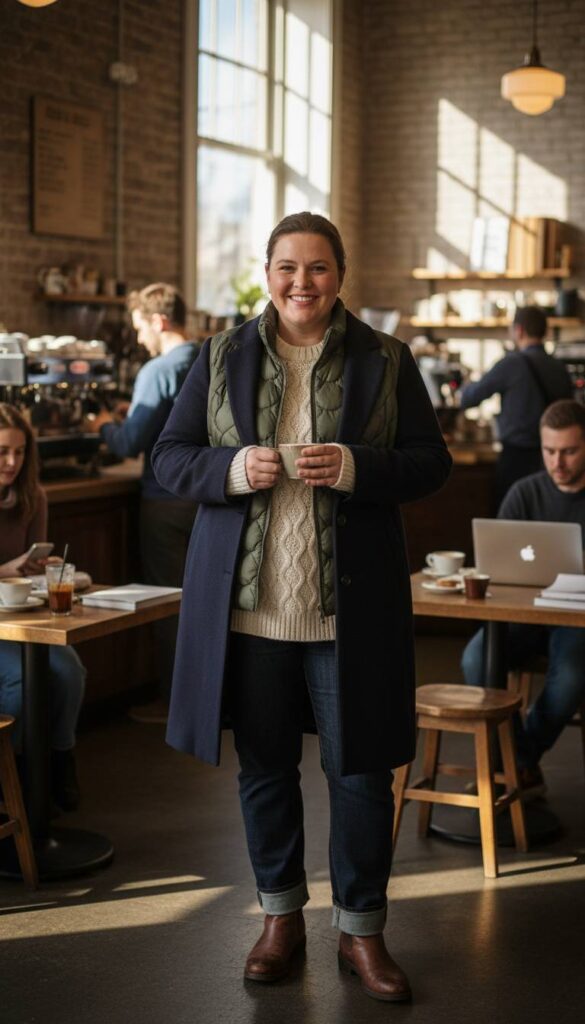 Redefine the puffer vest by opting for sleeker, more modern quilting and a matte finish. Forget bulky horizontal baffles; look for designs with onion, diamond, or vertical quilting that create a less voluminous, more streamlined effect. A slim fit vest in a classic black or an earthy olive green acts as a core warming layer under a wool coat on the coldest days, or as a standalone piece over a sweater on a crisp autumn afternoon. It provides insulation exactly where it is needed without adding bulk to the arms, making it a highly practical and surprisingly flattering component of a layered look.