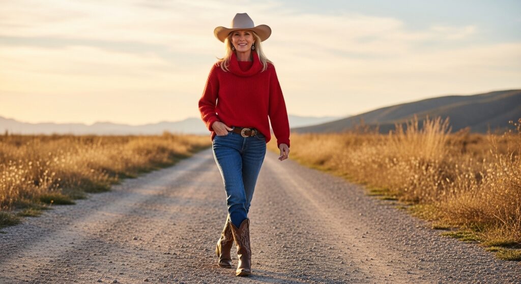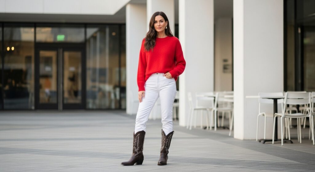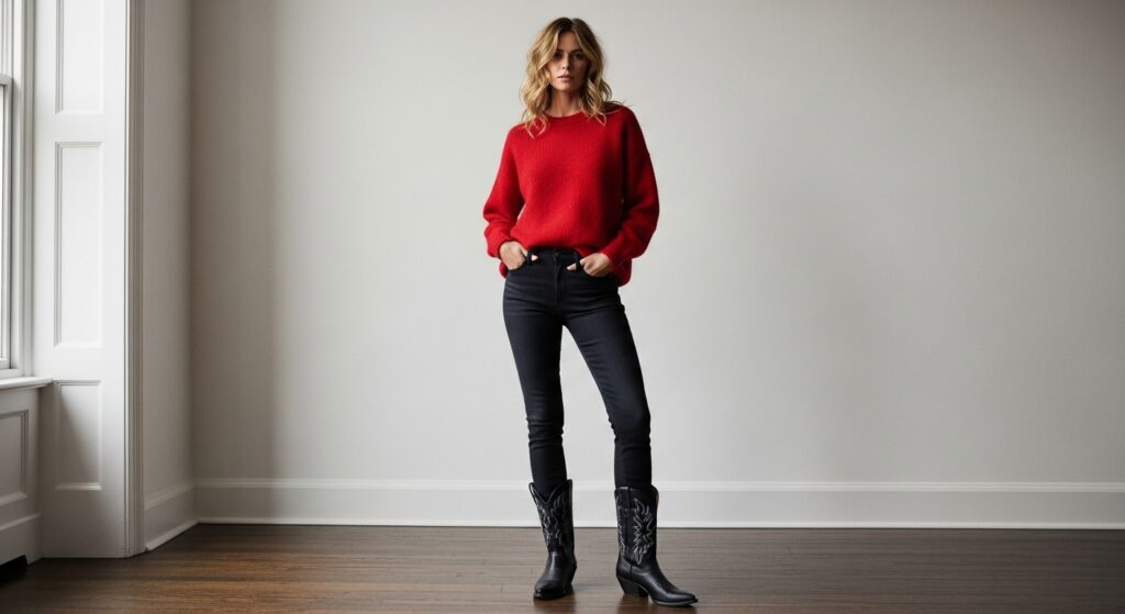 The combination of a bold red sweater and iconic cowboy boots is more than just an outfit; it’s a statement. This pairing marries cozy comfort with rugged, independent charm, creating a look that’s both eye-catching and effortlessly cool. Whether you’re aiming for a casual weekend vibe, a chic city look, or something in between, this dynamic duo offers endless versatility. Get ready to discover 15 stunning ways to style this timeless combination and conquer any season with confidence.