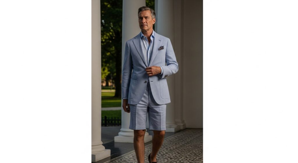 For the bold and style-conscious, a seersucker sport coat is a summer staple. This puckered cotton fabric is incredibly lightweight and breathable. While often paired with matching trousers, you can create a more modern, playful look by wearing it with tailored chino shorts. It’s a confident move for a summer event or vacation. To try this look, consider the Haggar Men’s Classic Fit Seersucker Blazer.