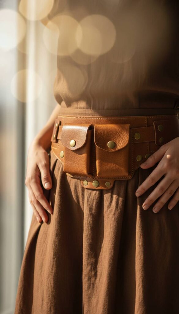 Steampunk fashion is deeply rooted in the idea of function and invention. Where does an adventurer keep her tools? In a utility belt, of course. Swap out a traditional purse for a leather hip belt with multiple pouches. It’s incredibly practical for holding your phone and money while keeping your hands free. Wear it slung low over one hip to break up the lines of a long skirt.