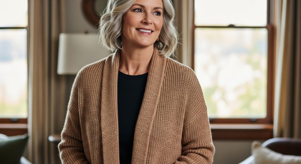 Layering is your best friend for a long day of festivities, and a long, cozy cardigan is the perfect third piece. Drape it over a simple base of a fitted top and comfortable trousers or jeans for instant warmth and polish. A chunky knit or cashmere blend adds a touch of luxury, making you feel wrapped in comfort. The MEROKEETY Women’s Waffle Knit Cardigan is a popular and stylish option on Amazon.