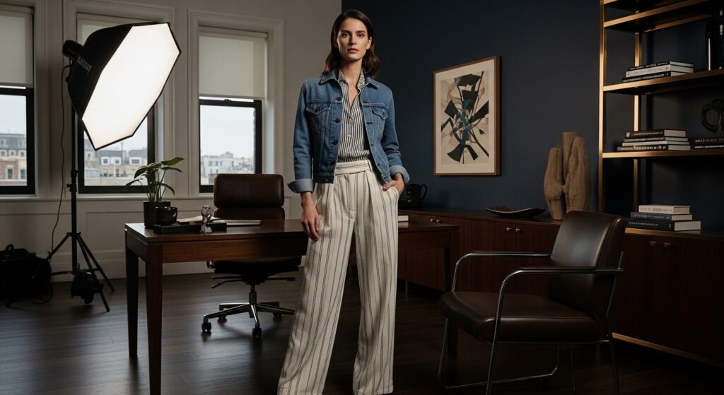 Yes, you can wear a jean jacket to the office! Elevate it by pairing it with a pair of sophisticated, tailored wide-leg trousers and a simple blouse. This creates a sharp, business-casual look that is both professional and fashion-forward, proving just how versatile denim can be. The Tronjori Women’s High Waist Palazzo Pants are a fantastic choice for this.