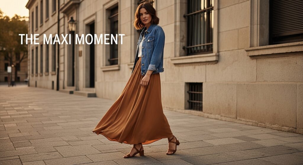 Channel your inner bohemian by pairing a classic jean jacket with a long, flowing maxi skirt. The structure of the denim provides a beautiful contrast to the soft, ethereal movement of the skirt, creating a balanced and romantic look that’s perfect for a sunny day out. You can find a beautiful base for this outfit with the ZESICA Women’s Bohemian Floral Print Maxi Skirt.