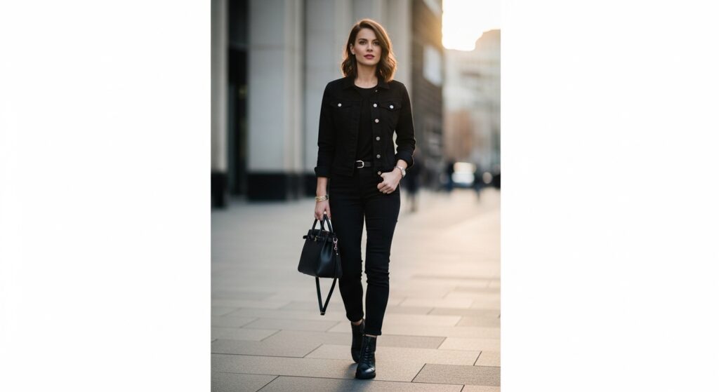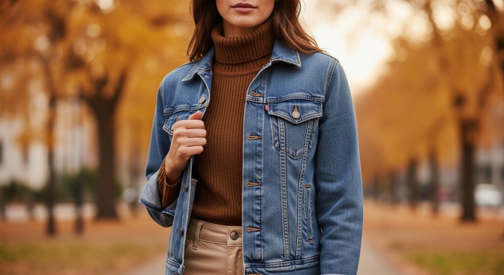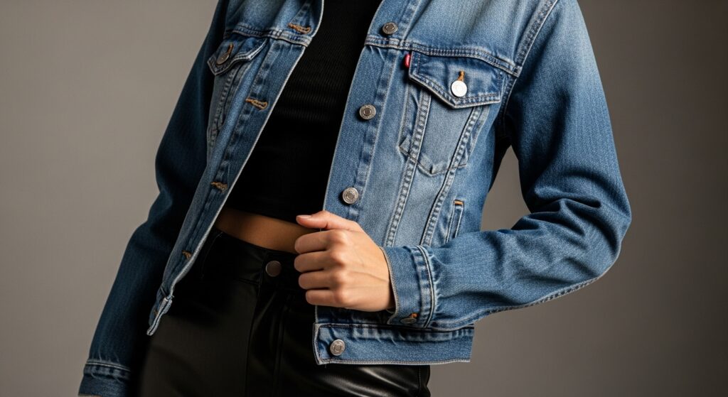 This is the quintessential cool-girl uniform. Pairing a blue denim jacket with a crisp white t-shirt and black skinny jeans is a timeless look that never fails. It’s effortlessly chic, comfortable, and perfect for almost any casual occasion. It’s a foundational look that you can build upon with accessories. For the perfect starting point, consider the Levi’s Women’s Original Trucker Jacket, a true classic.