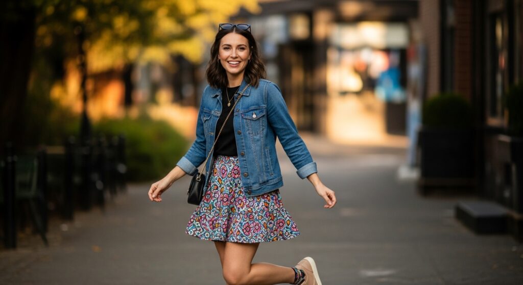 Create an unexpectedly chic outfit by pairing a fitted jean jacket with a silky or pleated midi skirt. This high-low combination bridges the gap between casual and dressy, making it suitable for everything from brunch with friends to a creative office environment. It’s a modern way to wear two wardrobe staples. We recommend checking out the Kate Kasin Women’s Pleated A-Line Swing Skirt to complete the look.
