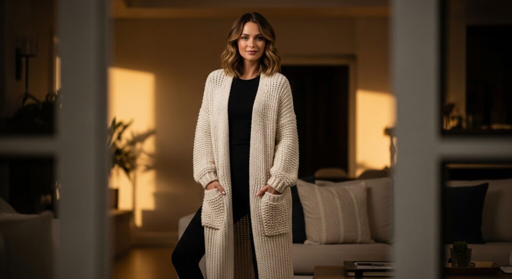 For an elongated and streamlined silhouette, a long cardigan is an excellent choice. It drapes beautifully over the body, adding a layer of warmth and sophistication. This pairing is perfect for creating a cozy, layered look that feels put-together yet incredibly comfortable. It works well for lounging at home, running errands, or even in a business-casual setting. A highly-rated option is the MEROKEETY Women’s Long Sleeve Open Front Cardigan.